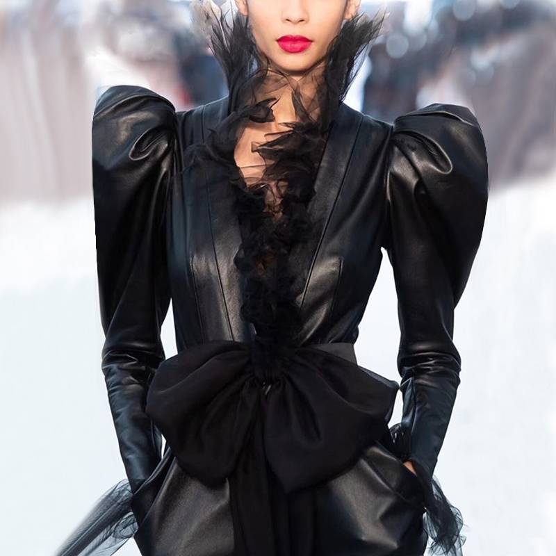Cotton Polyester Bow Decoration V-Neck Single Breasted Jacket