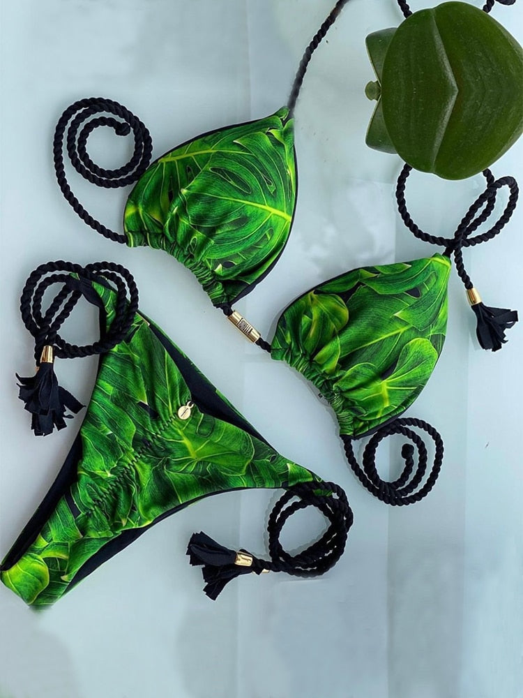Karma's Gonna Track You Down Two Piece bikini offers a stylish, printed pattern and charming style. This two-piece is perfect for beach fun and pool lounging. Crafted with unparalleled attention to detail, the bold design and quality materials offer durability and comfort in any setting.