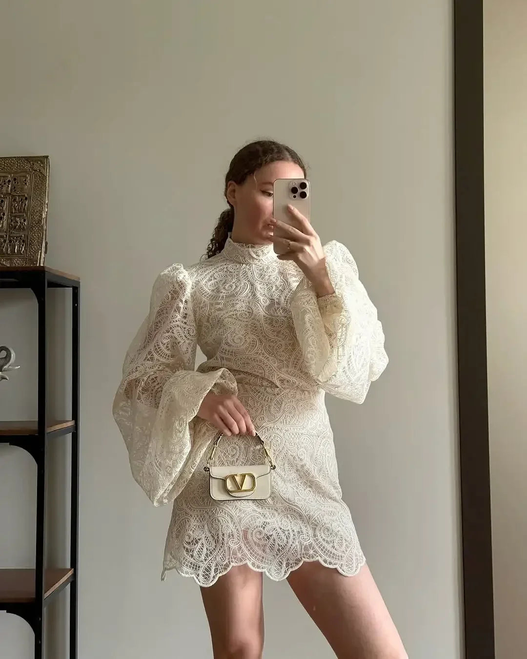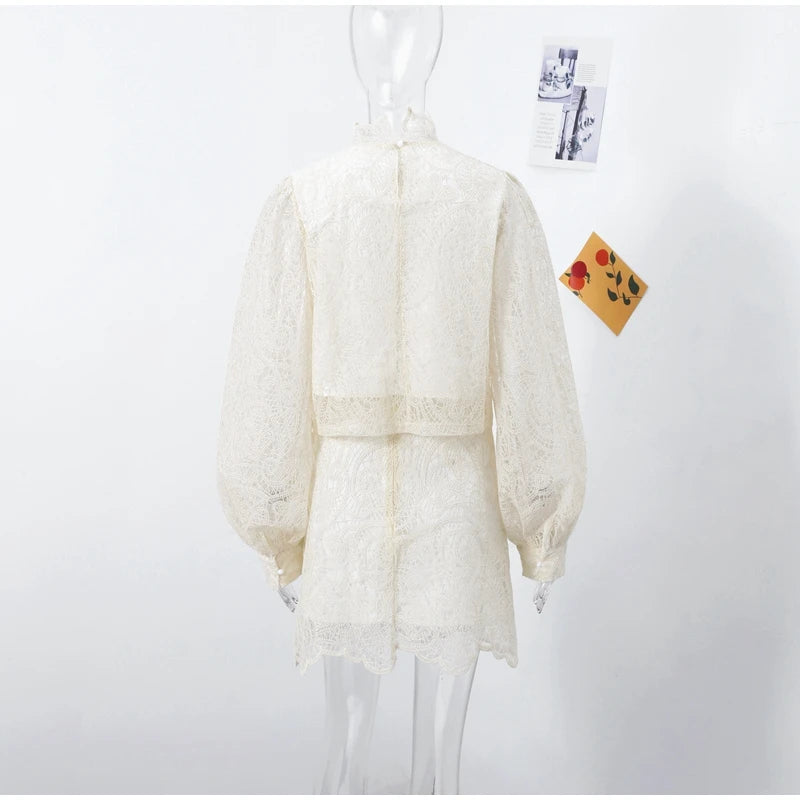 Lace Elegant Turtleneck Skirt Set