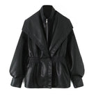 Lapel Zipper Cinched Leather Jacket