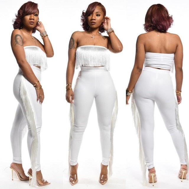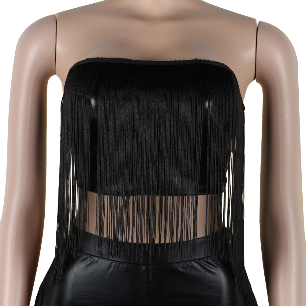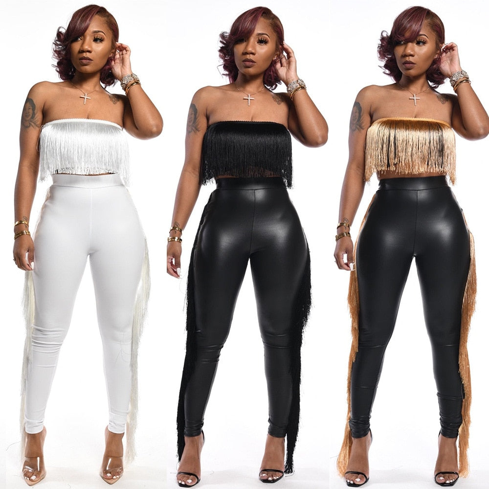 Faux Leather PU Polyester Tassel Decoration Sleeveless Pant Sets