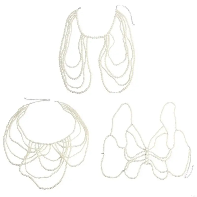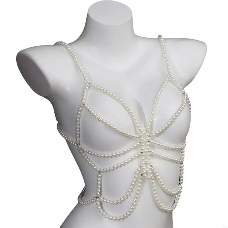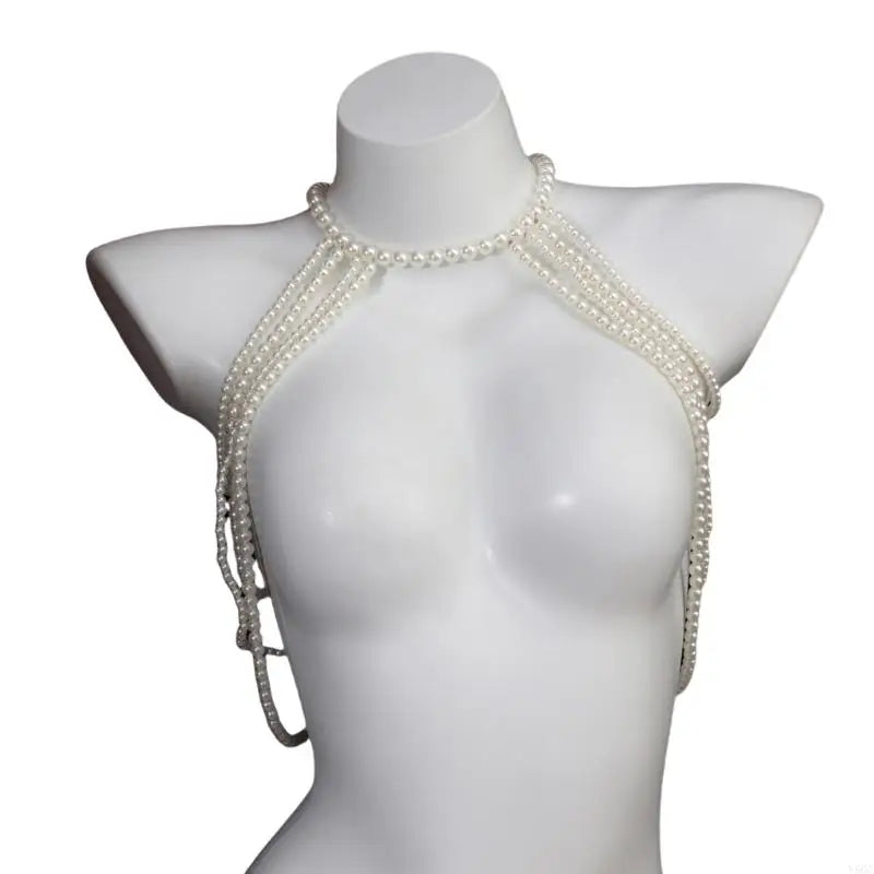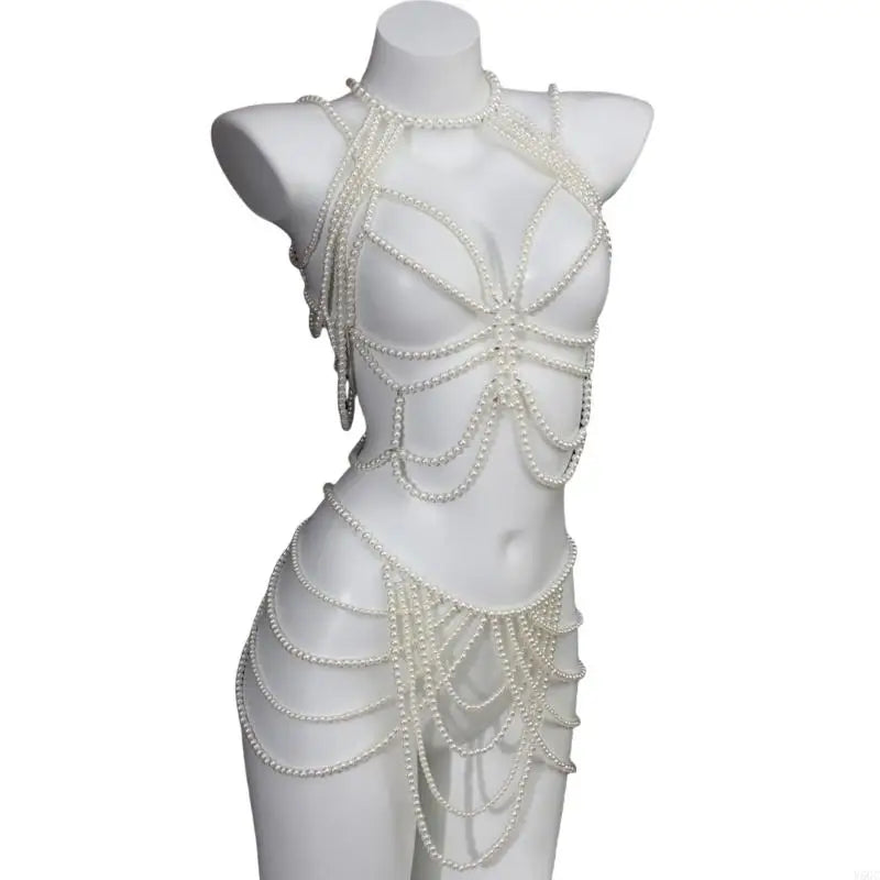 Embrace bold self-expression with this striking body jewelry piece. Featuring lustrous faux pearls in pristine white, it radiates sophistication with an edge. The creamy pearl finish catches light beautifully, creating an ethereal glow against your skin. Designed for those unafraid to push boundaries and celebrate their authentic power, this piece transforms any look into a fearless statement.