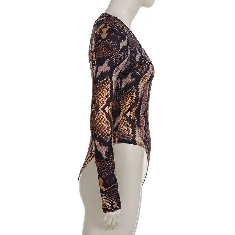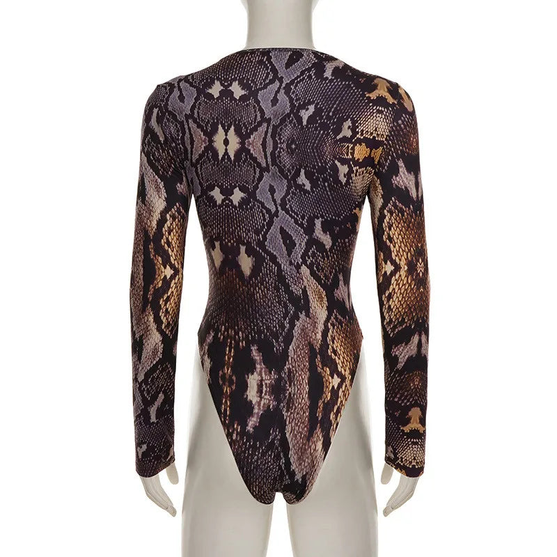 Dominate with this provocative bodysuit that channels raw, untamed energy. The striking snakeskin pattern demands attention, while the polyester-spandex construction ensures a second-skin fit that moves as fearlessly as you do. This isn't just clothing—it's a declaration of power wrapped in texture and attitude. Wear it when you're ready to shed your limitations and embrace your most formidable self.