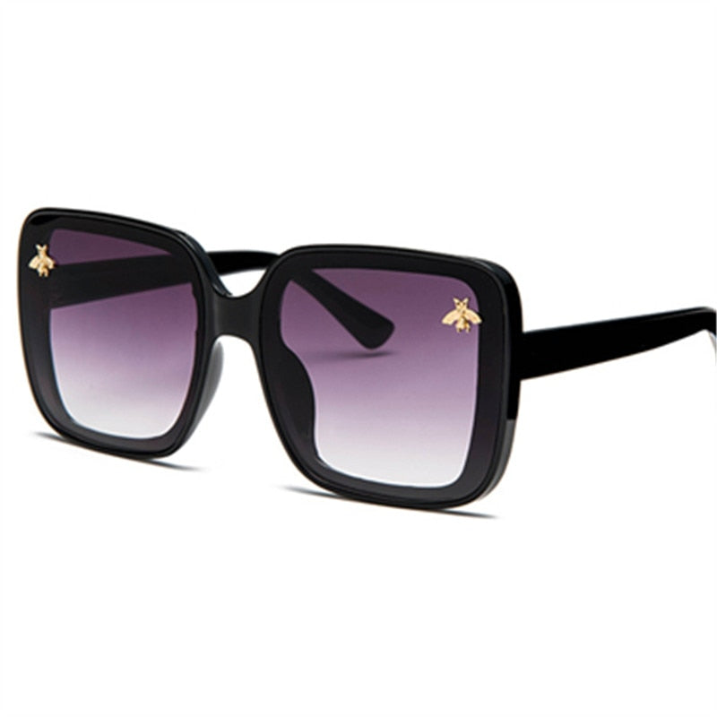 Plastic Frame UV400 Square Sunglasses with Rivet Decoration