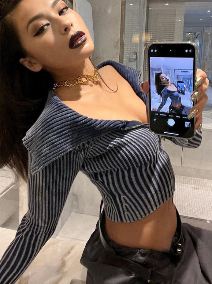 Dress up in this cool and stylish women's jacket that is made from polyester. A trendy striped design that gives off a contemporary look, this stylish jacket combines well with a variety of other items. A crop length makes it easy to layer on layers whilst the zipper front closure makes it easy to get in and out of. Designed to give you that effortless elegance that is perfect for any day.