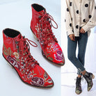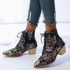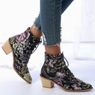 These ankle-length boots are a wonderful addition to a stylish wardrobe. The elegant lace-up closure ensures a snug fit, while the durable materials are sure to keep the look of your boots fresh for years to come. The classic floral pattern is a great way to add a bit of sparkle to any outfit.