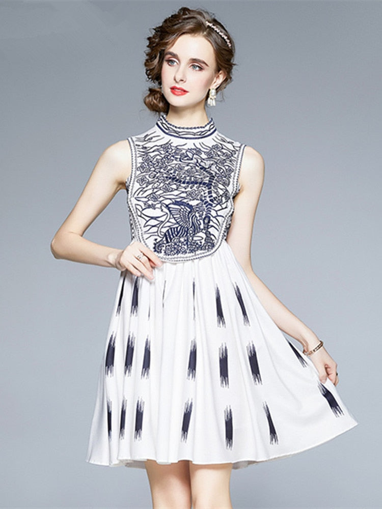 This sleeveless, cotton, floral embroidered, the o-neck mini dress is perfect for any occasion. The design is versatile and can be worn both day and night.