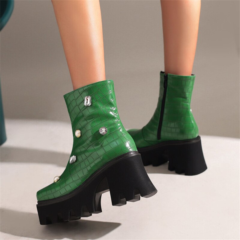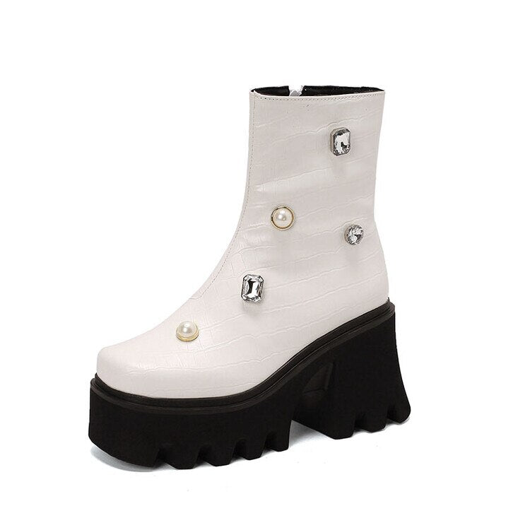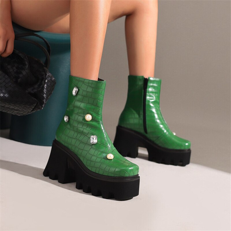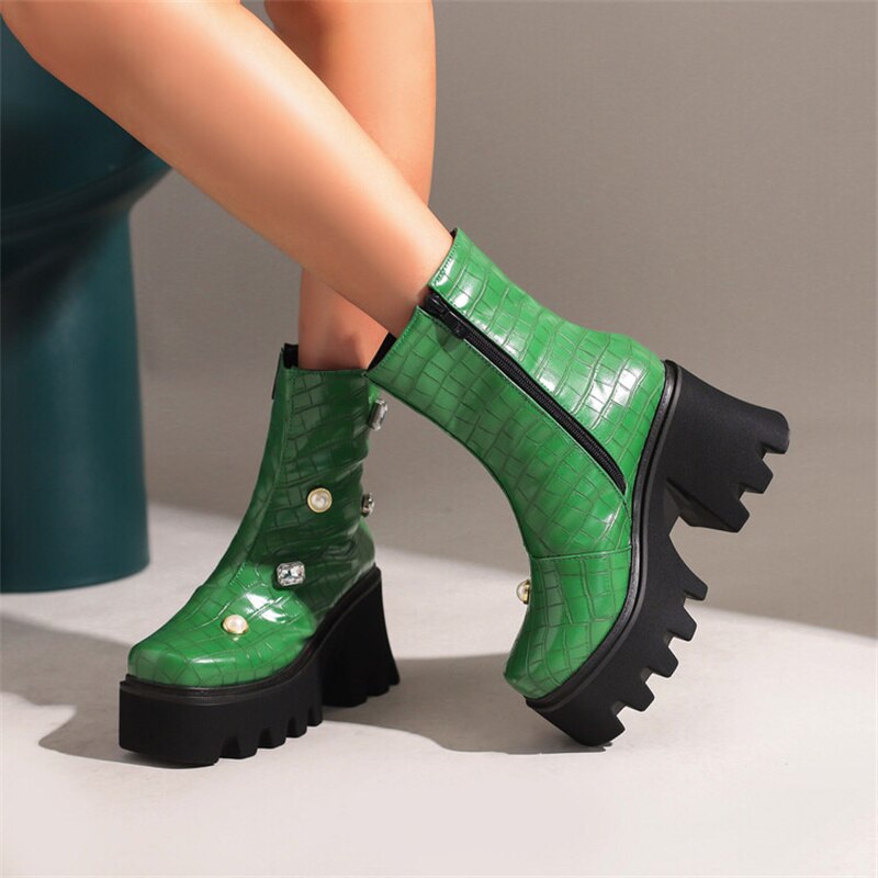 These unique and trendy women's boots are sure to turn heads. Featuring a chic ankle cut and animal skin pattern, these boots are a great way to show off some stylish rompers. A zipper is included to make getting on and off easy.