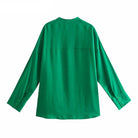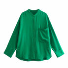 Long-Sleeved Loose Shirt with Pocket and Single Breasted Closure