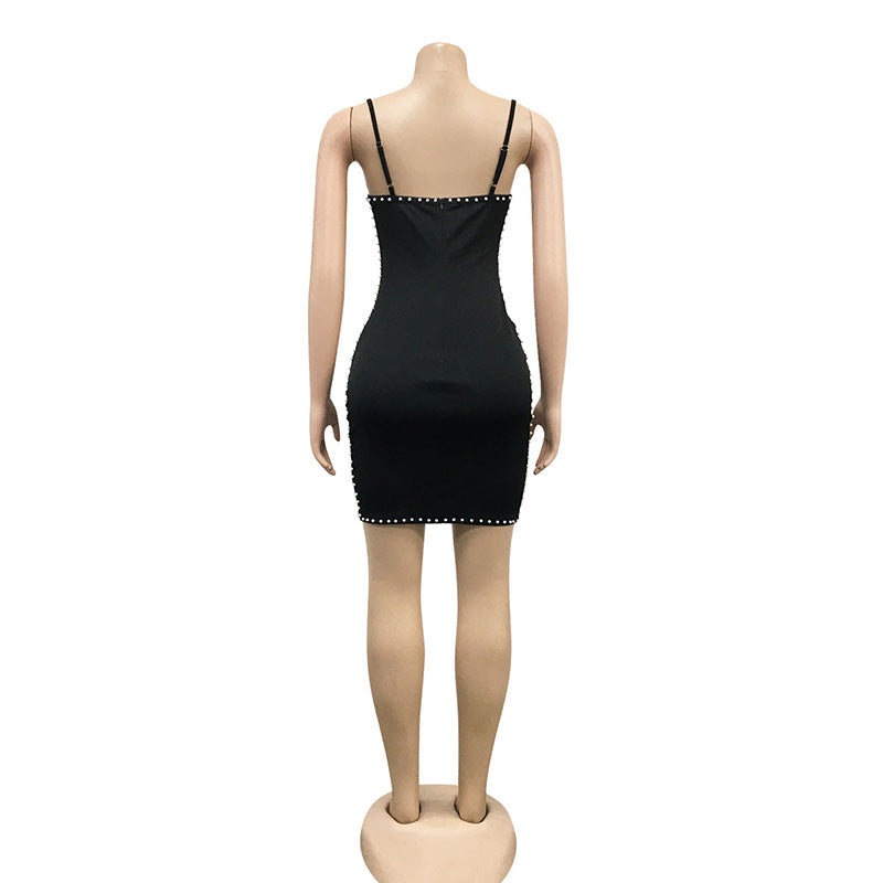Sleeveless Pullover Mini Dress with See-Through Patchwork and Beads Decoration