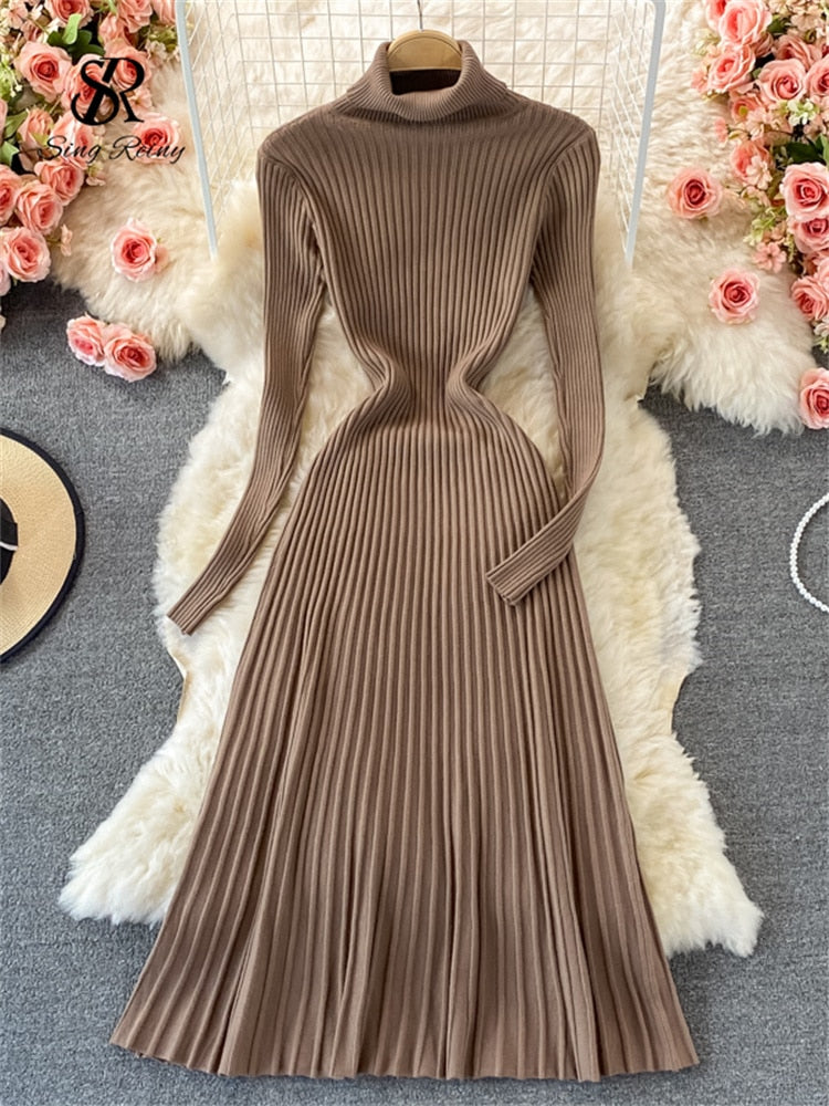 Here's a versatile and stylish outfit that will take you from day to night. With a soft and comfortable knit fabric, this versatile dress can be worn for a variety of occasions. The A-line silhouette offers a flattering fit that will keep you looking and feeling your best.