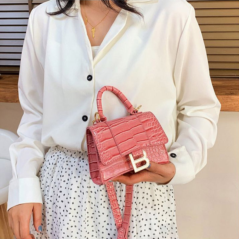 B Letter Decorated Top Handle Bag with Pocket and PU Material