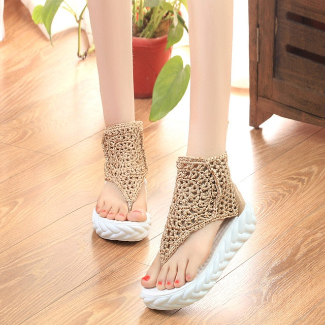 Microfiber Jelly Shoes with Crochet Style Ankle Wrap Strap