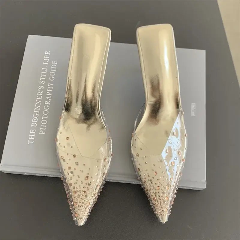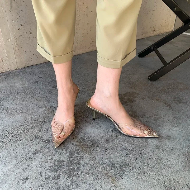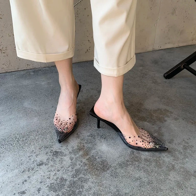 Rhinestone Transparent Mules Pump Shoes