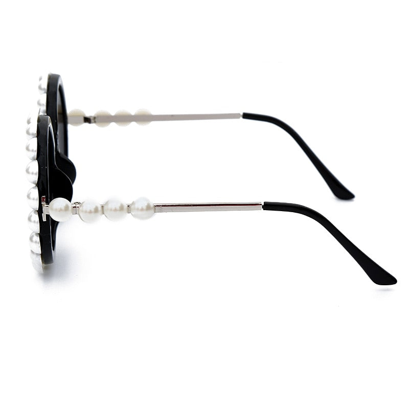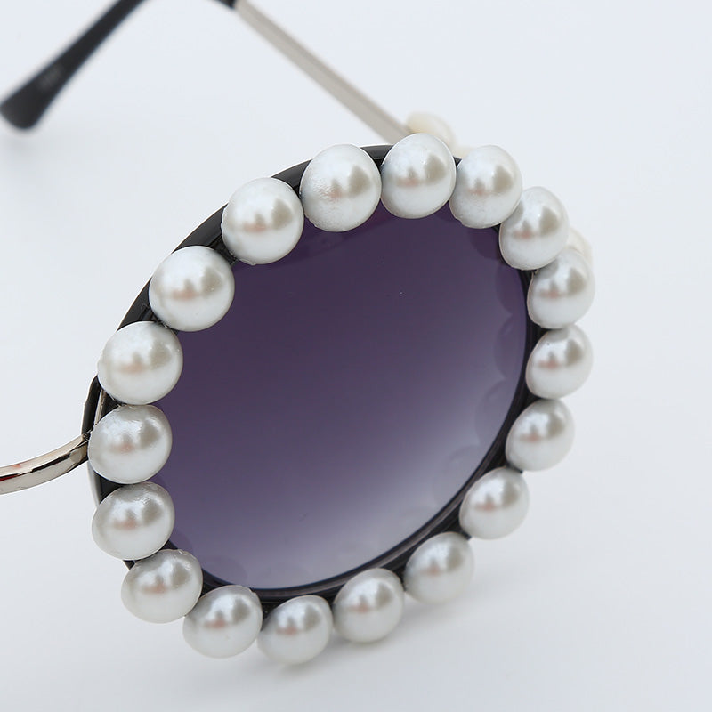 Alloy Frame UV400 Gradient Lens Round Sunglasses with Pearl Decoration
