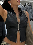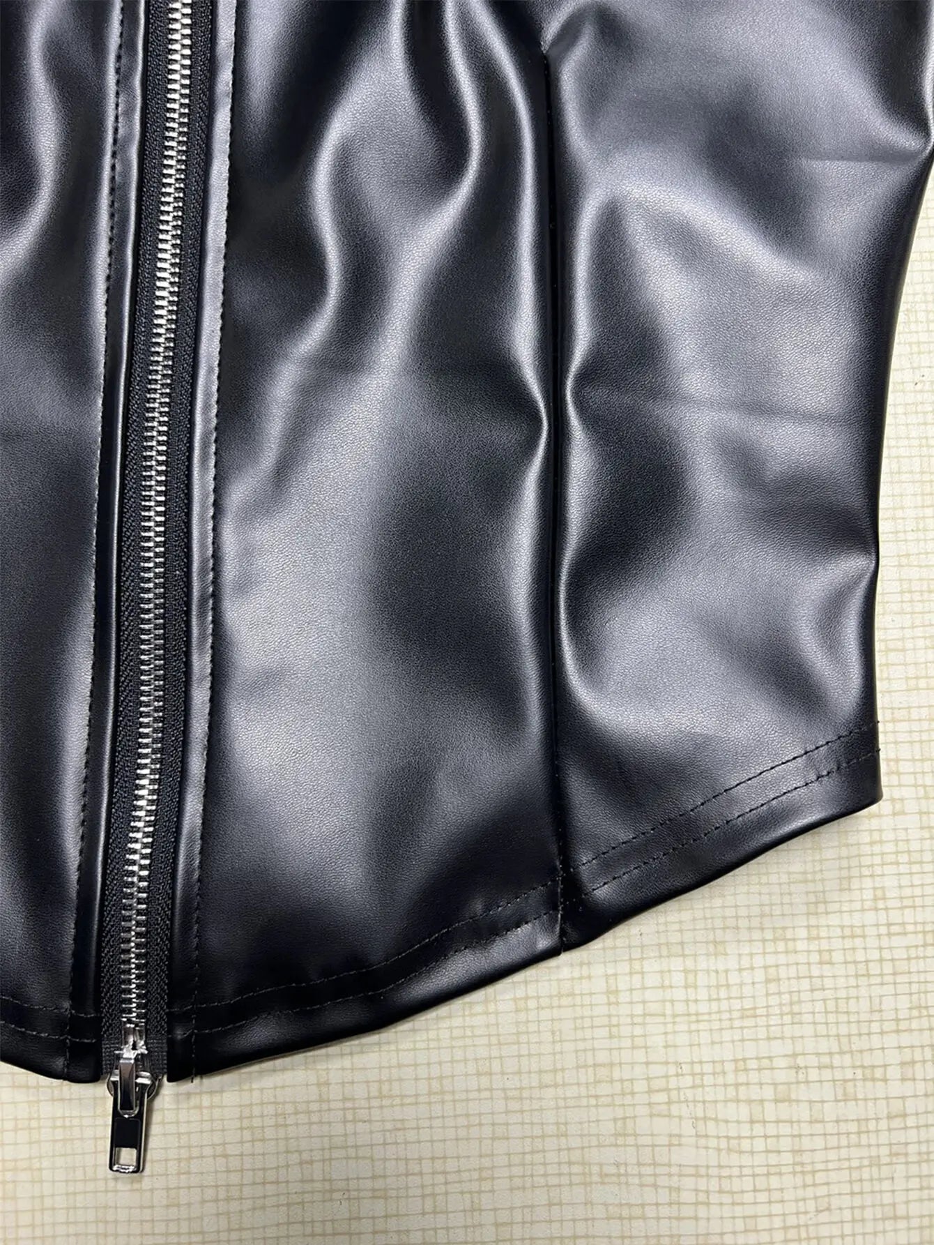 Unleash your rebellious side in our Rollin' Side By Side Crop Top. This edgy PU piece features a sleek zipper detail and solid construction that hugs your curves in all the right places. Designed for those who dare to stand out, this crop top makes no apologies for turning heads and breaking hearts.