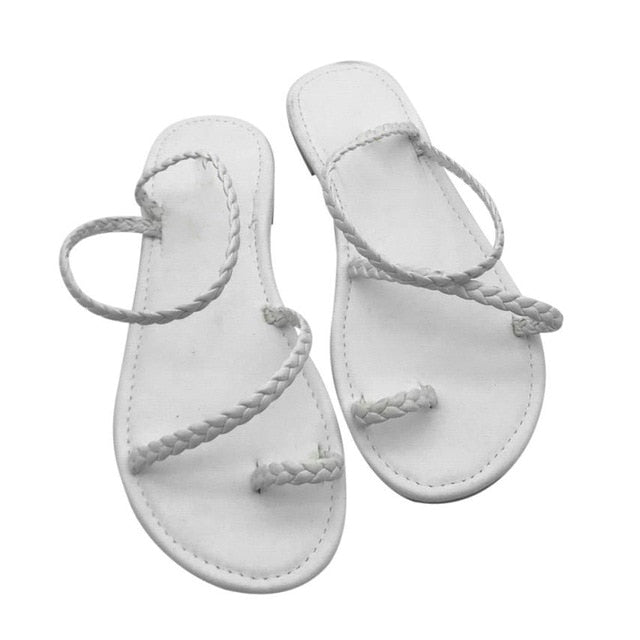 Ankle Braided Slingback Strap PU Leather Flat Sandal