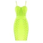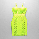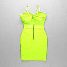 Neon Green Mini Dress with Adjustable Straps, Zipper Closure, and Cross Stitches Decoration