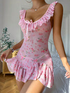 This nightdress offers a sweet and elegant look with its linen fabric and floral print. The charming design features intricate ruffles to add a classic and stylish touch to your nightwear. Perfect for a special night-in.