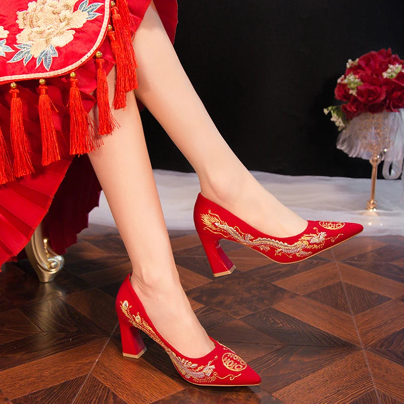 Elevate your style with Silent Storm Pump Shoes! These pointed toe pumps feature intricate embroidery, making them a unique fashion statement. Whether you prefer a thin or thick heel, these pumps are versatile and can be dressed up or down.