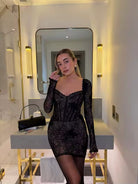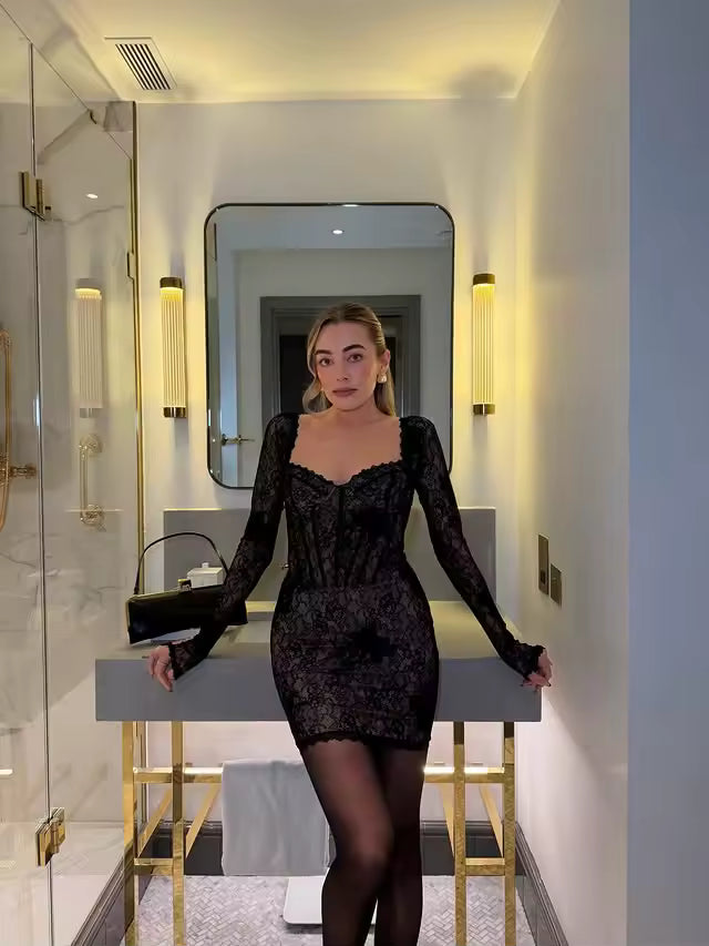 Embrace the night in this captivating Soft Citylights Mini Dress, where delicate lace meets sleek polyester for an irresistible blend of elegance and edge. The sweetheart neckline frames your silhouette with timeless allure, while the luxurious lace detailing adds an undeniable touch of sophistication. Perfect for those bold enough to turn heads, this mini dress transitions effortlessly from evening events to late-night adventures. Make a statement that's unmistakably yours.