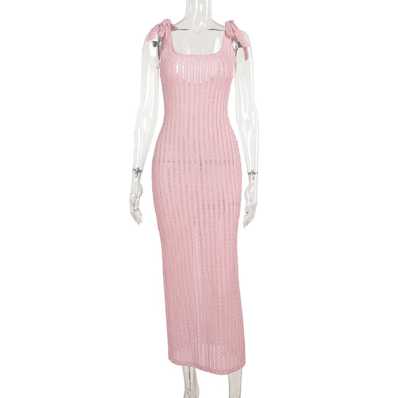 Solid Sleeveless Knitted Maxi Dress