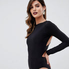 Skinny Fit Solid Black Bodysuit with Polyester Spandex Material