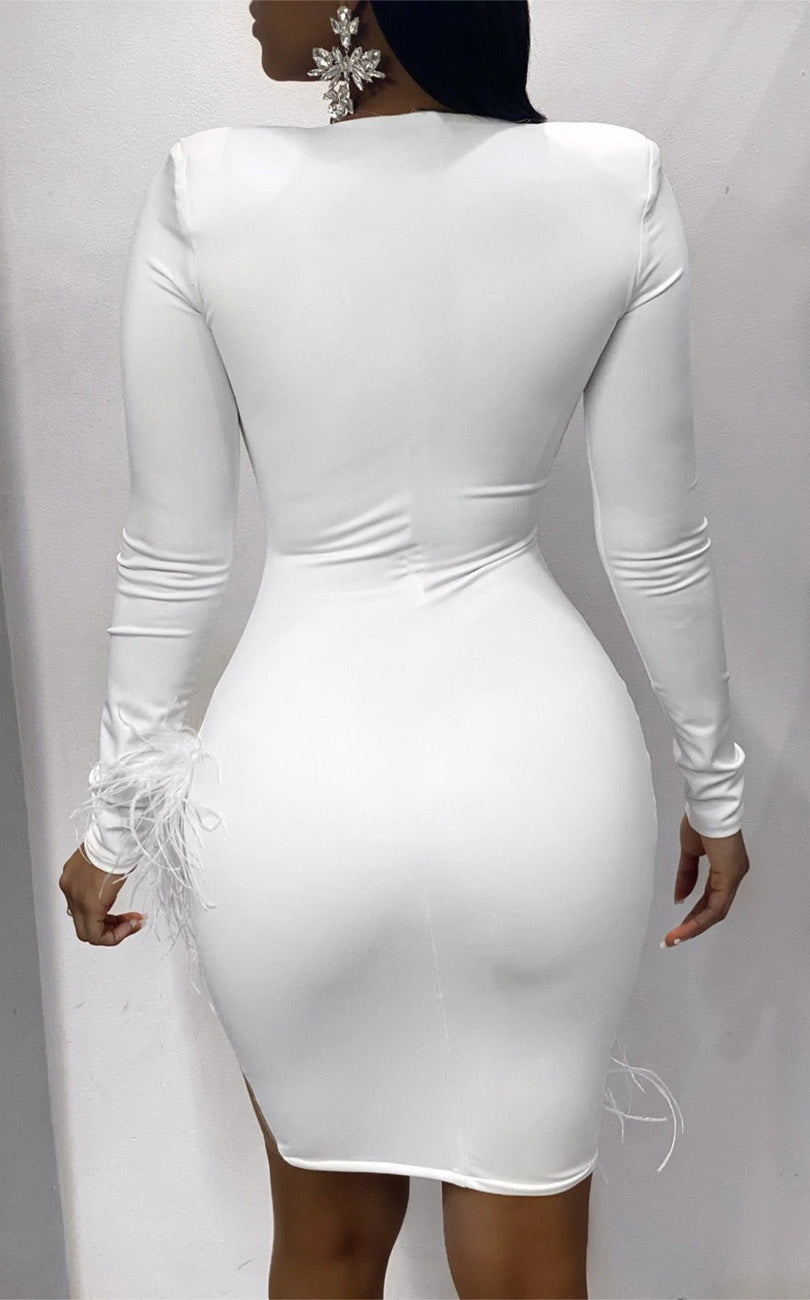 Effortless and casual is the best way to describe this long-sleeved mini dress. This beautiful dress has a v-neckline and feather patchwork design that's sure to become a favorite. The lightweight material is breathable and lightweight, and this dress will keep you comfortable and look great.
