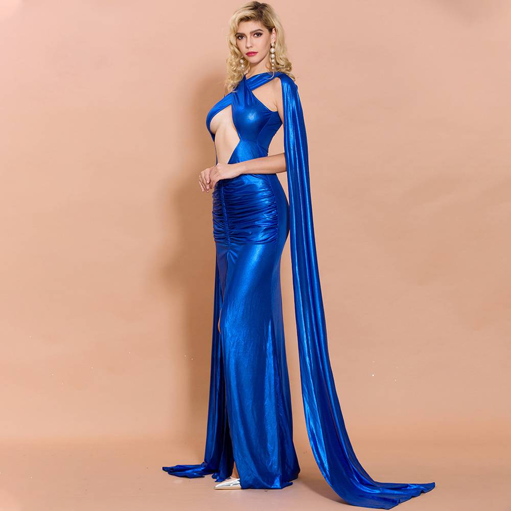 Sleeveless Solid Long Dress with Drawstring Decoration, Zipper Closure, and Polyester Material