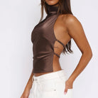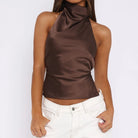 Turn heads with the Symphony Laugh Tank Top, designed with a daring backless style that reveals confidence and edge. Made from smooth, solid polyester, it offers a sleek fit that moves with you, perfect for making a fearless statement wherever you go.