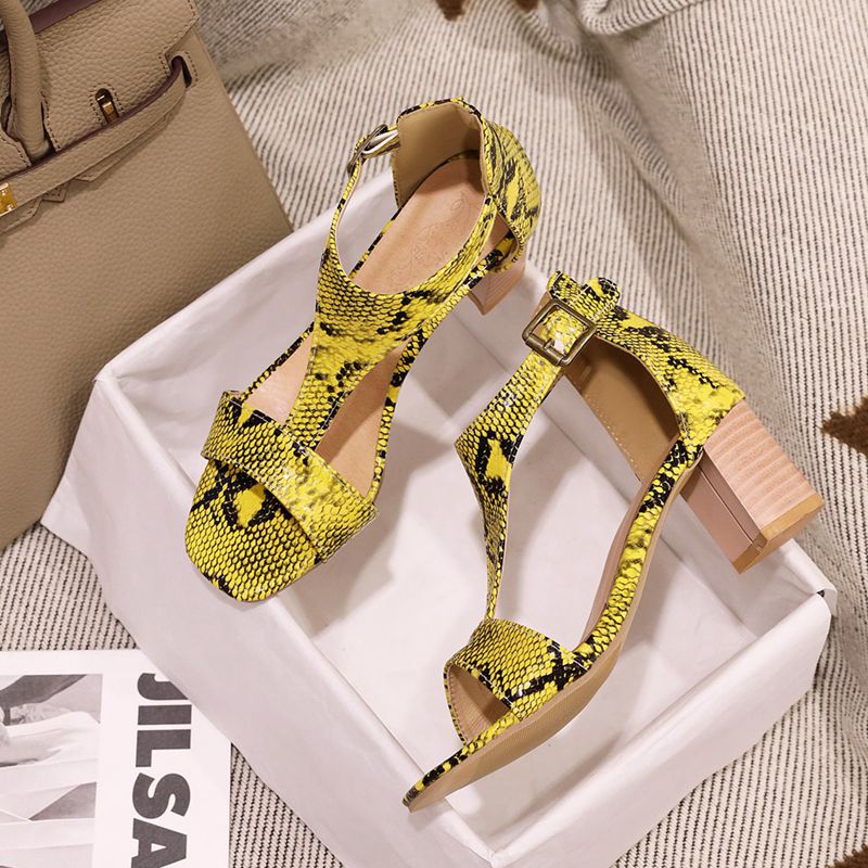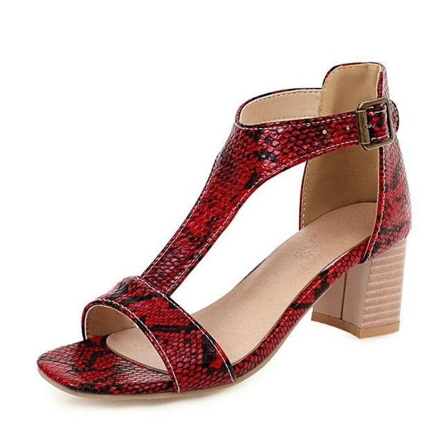 Sytentic Animal Printed Buckle Shoes Square Heels