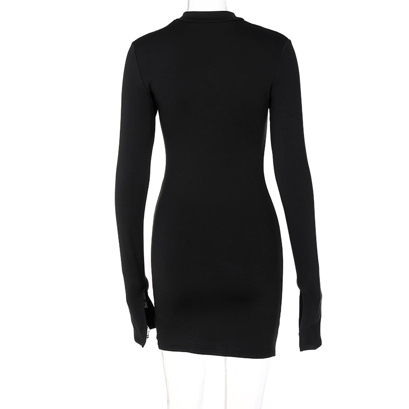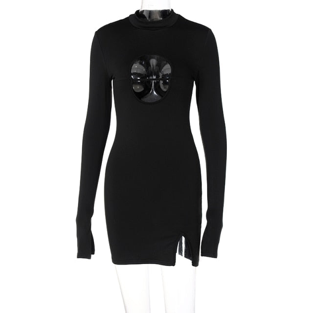 Look effortlessly chic in this season's hottest look. This long sleeve mini dress is the perfect way to show off your style. Pair it with your favorite accessories for a complete look. This stylish and subtle look is perfect for summer days that are filled with fun and adventure. The open stand collar is ideal for a comfortable and easy style. The delicate hollow-out design adds beauty and sophistication.