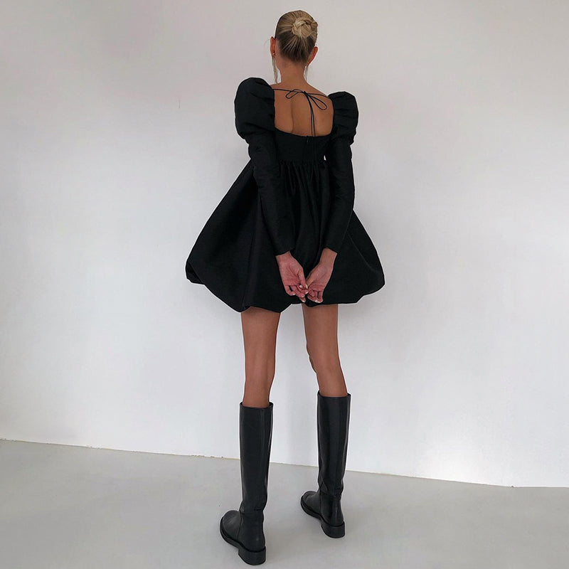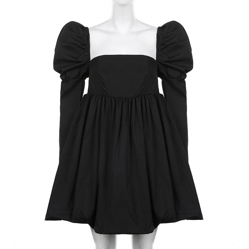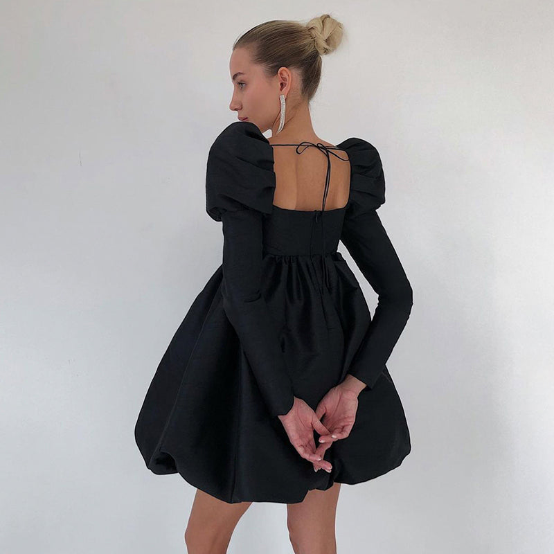 The ball gown mini dress is a modern take on the classic ball gown, designed with a square neckline and puff sleeves. The dress is made of polyester and features a flowing, puffy skirt that falls just above the knee. This dress is perfect for a night out on the town.