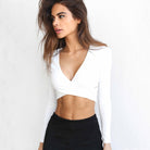 Long-Sleeved Cropped T-Shirt with Polyester Material