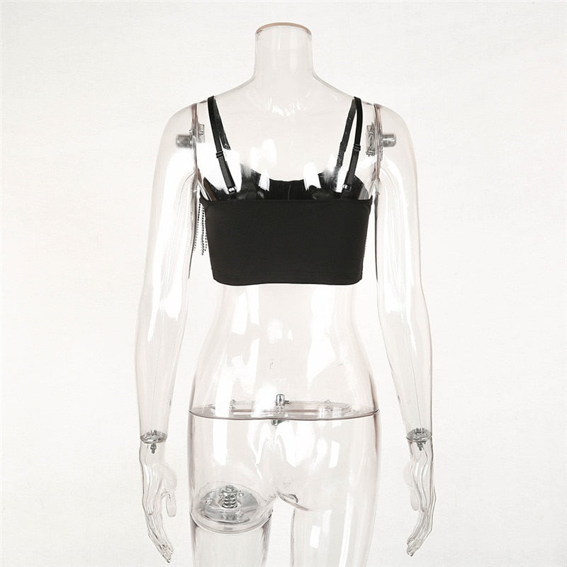 Cool and comfortable, this trendy crop top is a must-have for summer. A simple spaghetti strap and a rhinestone tassel decoration make this crop top easy to wear and stylish in a fun way. Wear this trendy design in a variety of ways. This comfortable crop top is made with a soft cotton material that allows you to wear this crop top on a daily basis.