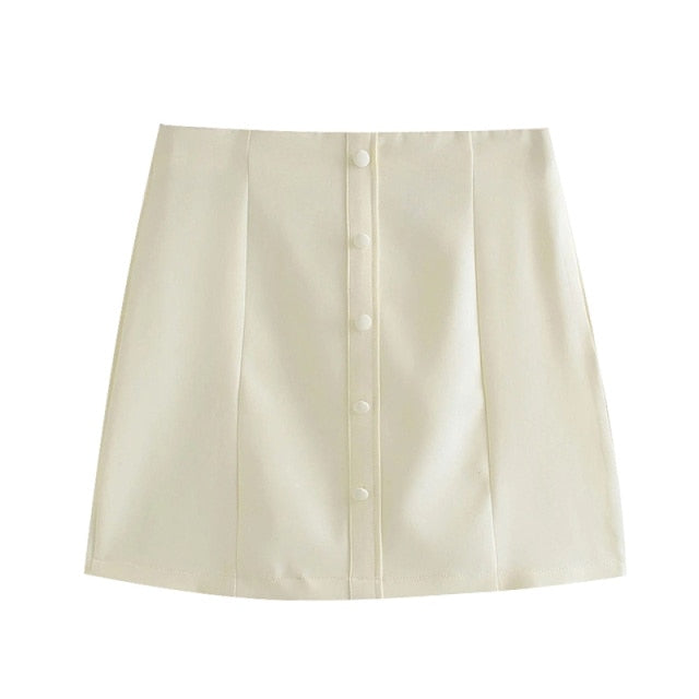 Vertical Patchwork Style Mini Skirt with Button Decoration and Zipper Closure