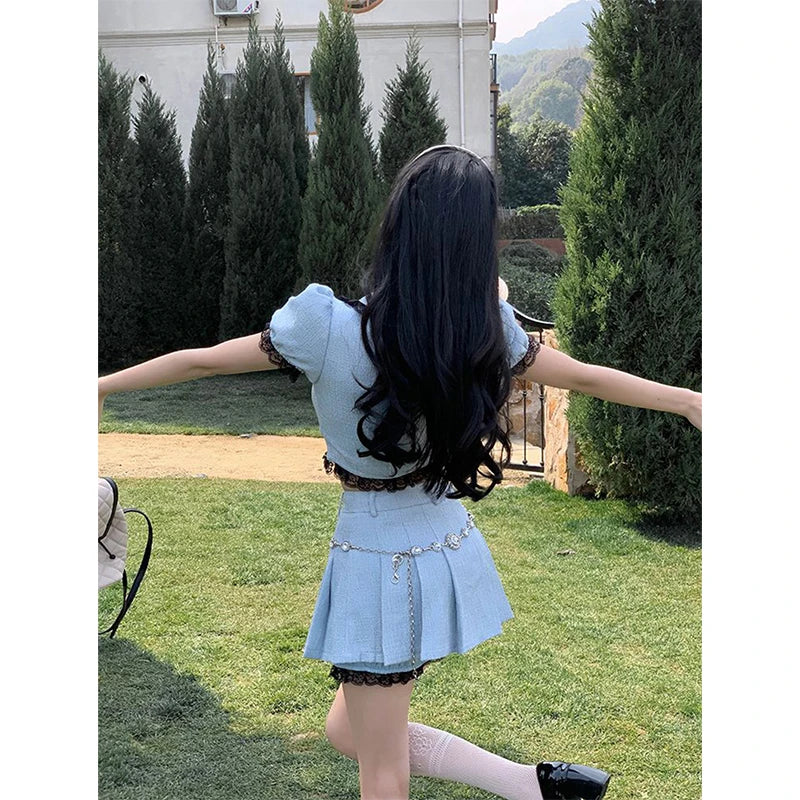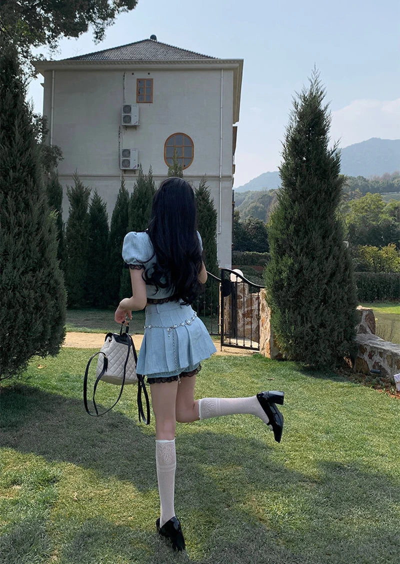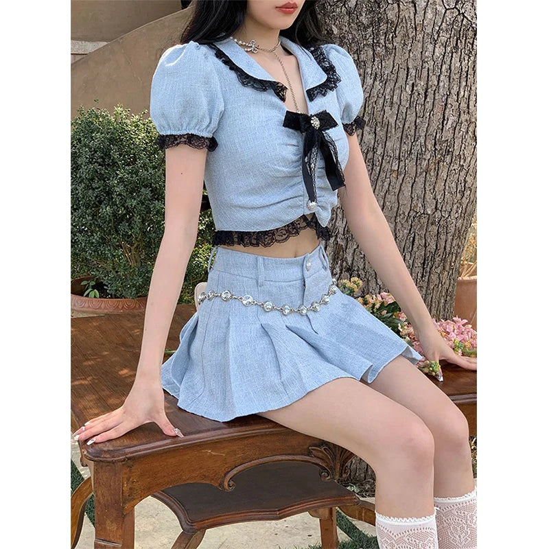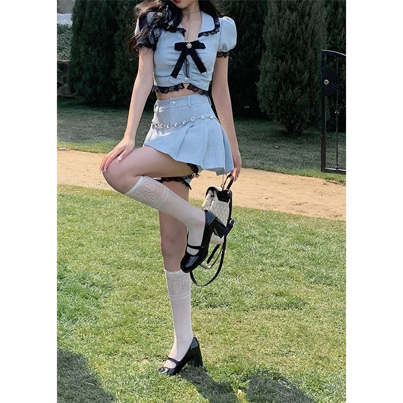Transform into a ray of sunshine with our Walking On Sunshine Skirt Set! This must-have ensemble features charming puff sleeves and delicate lace and bow decorations. Made with high-quality polyester, the above-the-knee skirt offers a flirty and feminine look. Perfect for any occasion, this set will have you radiating joy and confidence wherever you go!