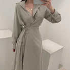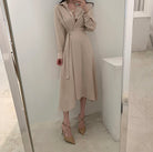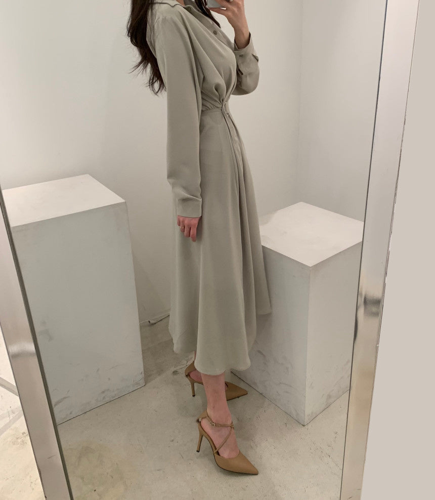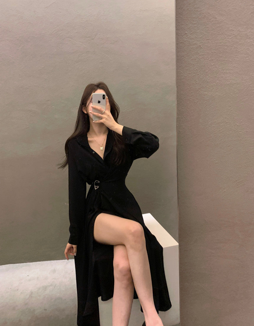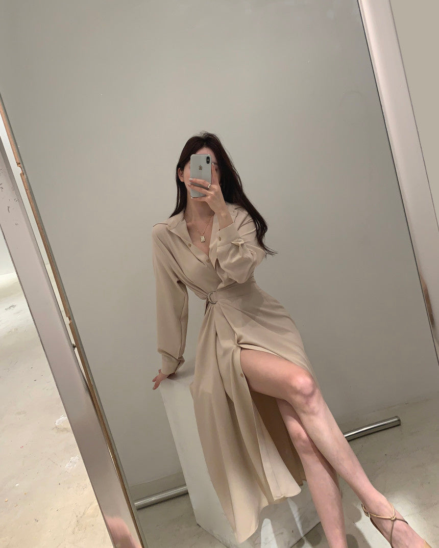 A staple for any wardrobe, this long sleeve midi dress is perfect for a night out. The chiffon material is soft and comfortable and falls just below the knee. A slit in the side allows for easy movement and the long sleeves provide warmth on a chilly night.