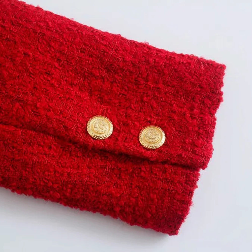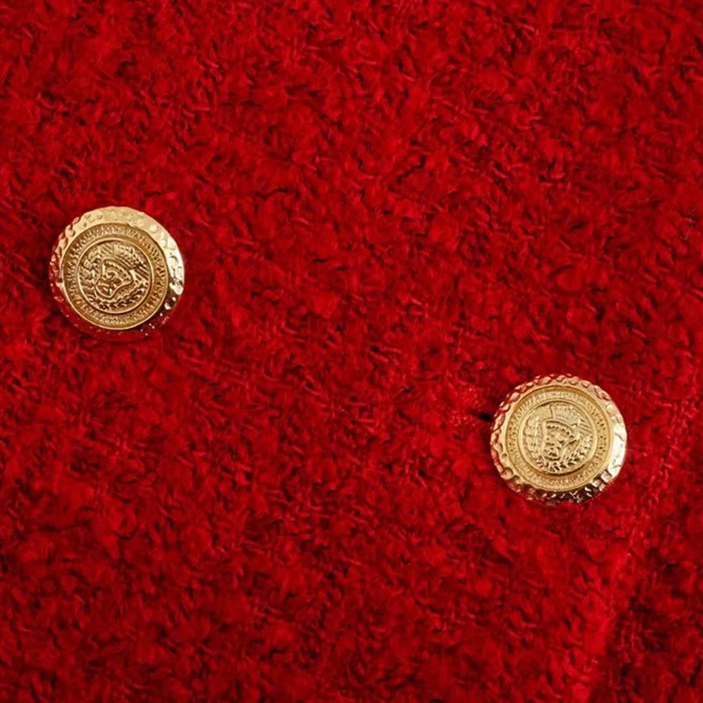 This gorgeous set will make any woman feel like a true diva. The double-breasted blazer has gold buttons that line the front. The mini skirt makes this set looks cute with its simple short cut-out slit design. You'll be sure to turn heads with this show-stopping ensemble.