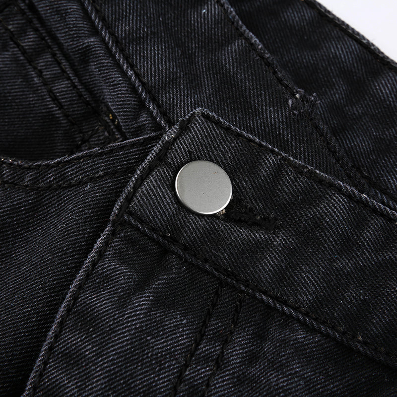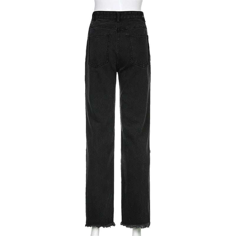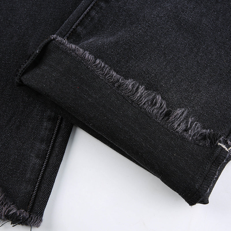 Light Washed Cotton Polyester Straight Ripped Jeans with High Waist