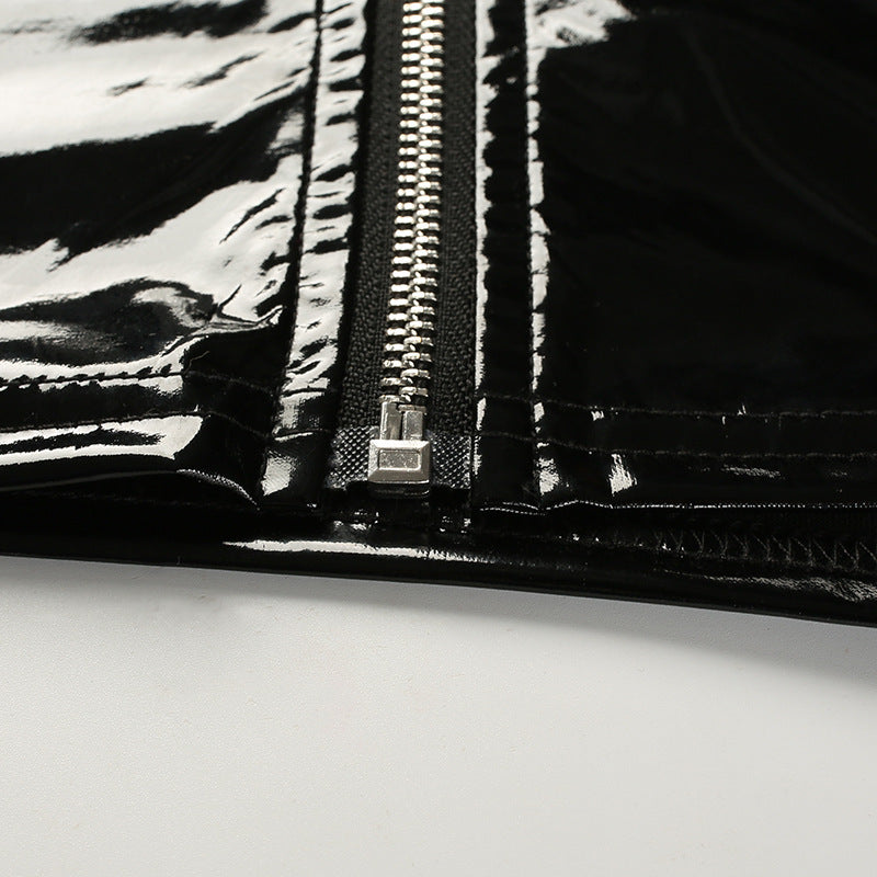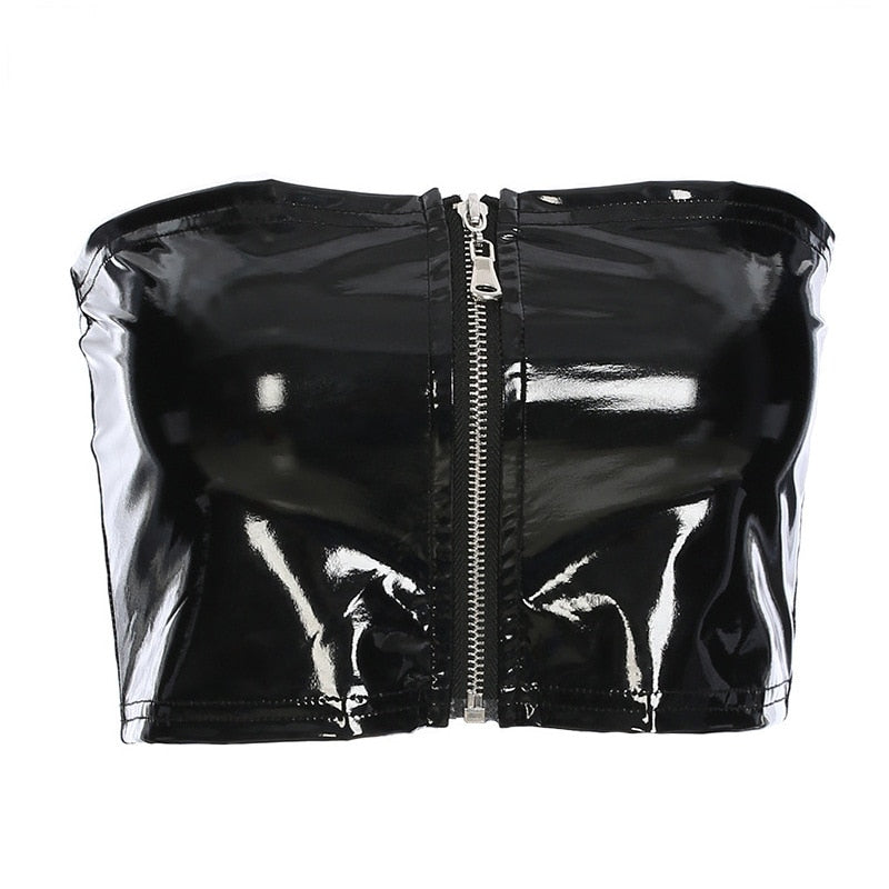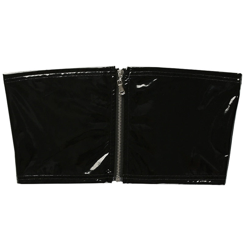 This stylish crop top is perfect for any occasion! The sleek PU material will keep you cool and comfortable while the strapless and sleeveless design will give you the perfect look. The zipper closure is easy to put on and take off.