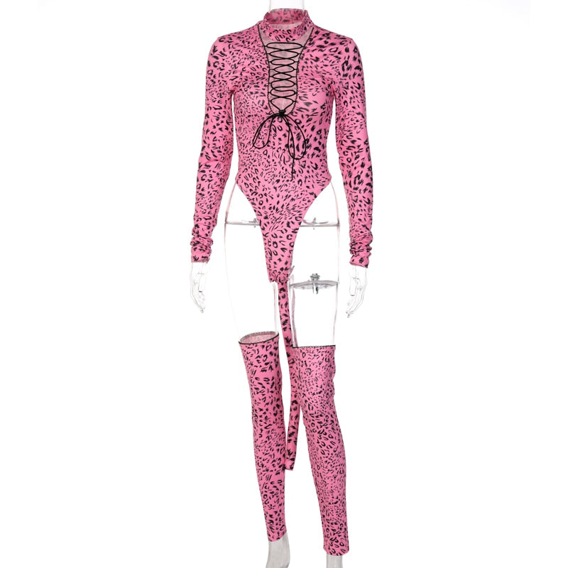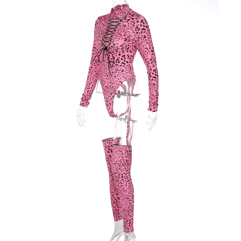 Wear this comfortable bodysuit with a cute top for a casual yet fashionable ensemble. The leopard print is a trendy and stylish choice that makes a bold statement. The easy-to-wear design has a front lace design that is sure to become a favorite.