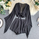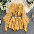 Conjuntos cortos de acetato de poliéster en mangas acampanadas con cintura elástica