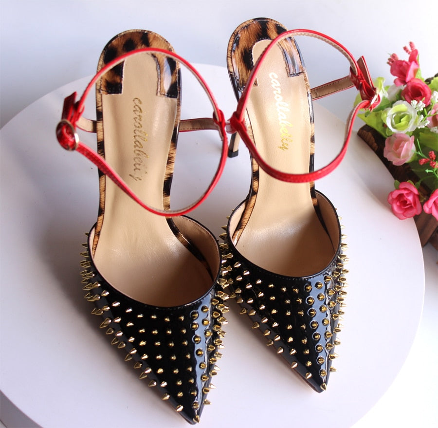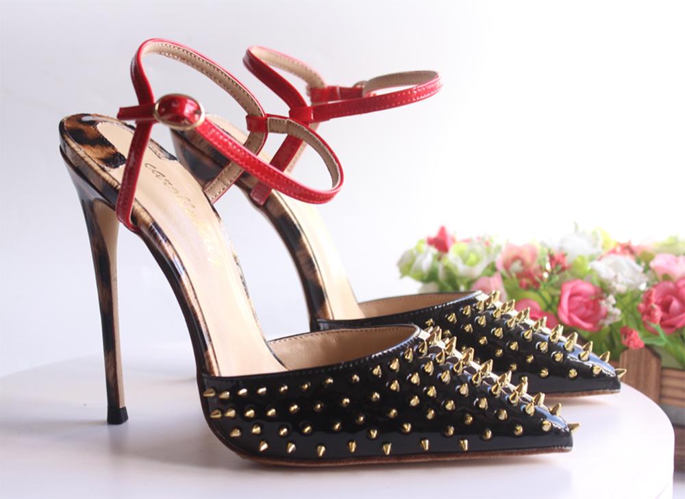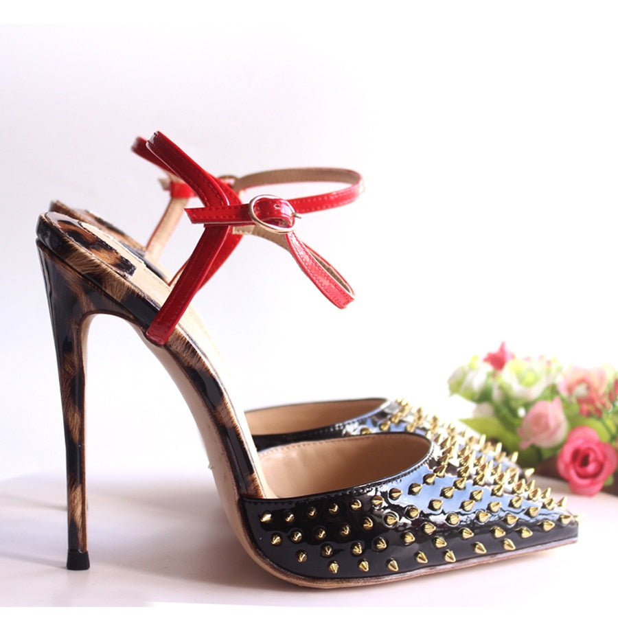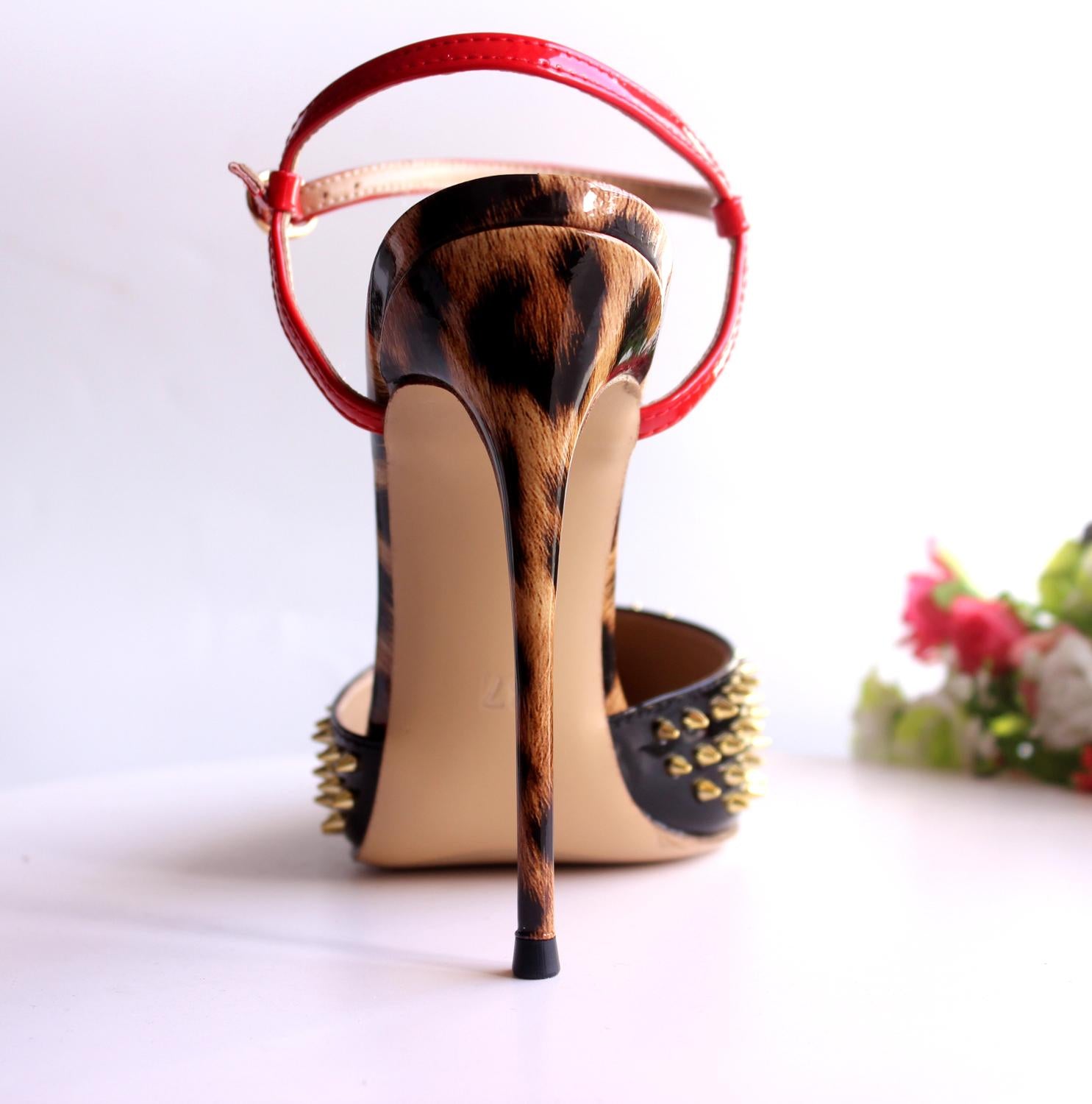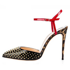 Tobilleras de piel auténtica con estampado de leopardo con remaches