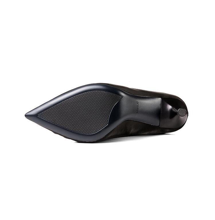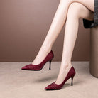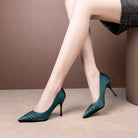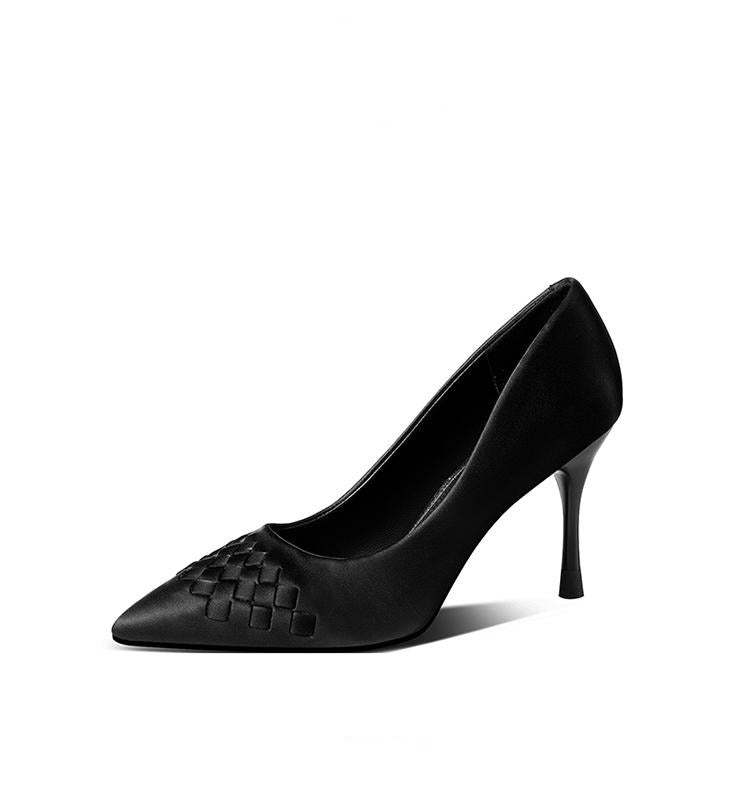 Solid PU Pointed Toe Stiletto with Subtle Geometric Pattern made From Silk and Rubber Material