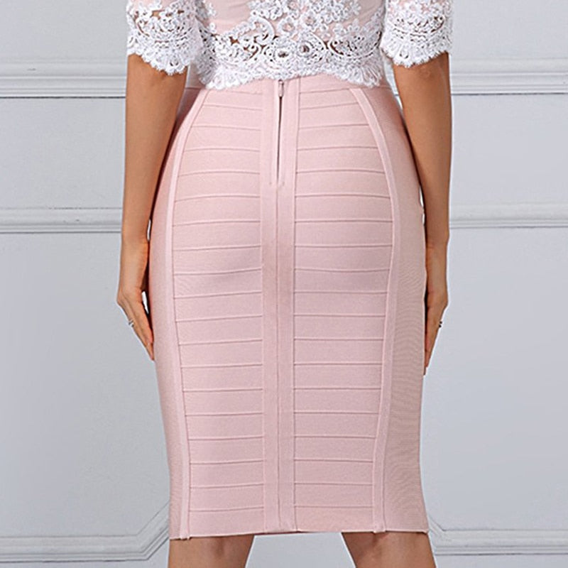 <transcy>Falda lápiz hechizante de color liso</transcy>