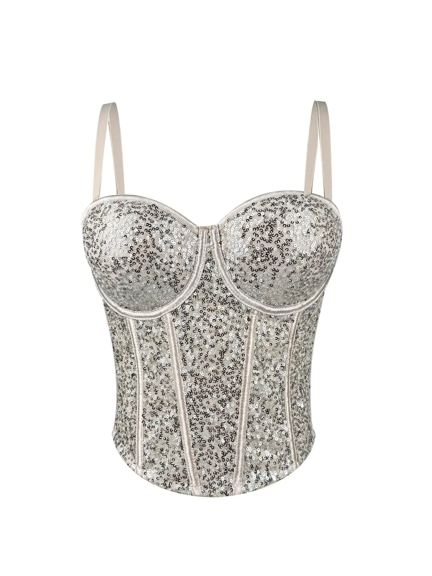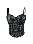 Elevate your style with the Blackout Desire Bustier, a daring top that combines sleek design with shimmering sequined accents. Its regular length and structured fit highlight your silhouette, making it the perfect statement piece for nights when you want all eyes on you. Embrace bold elegance and let your confidence shine.