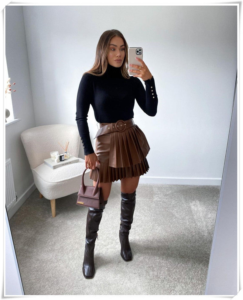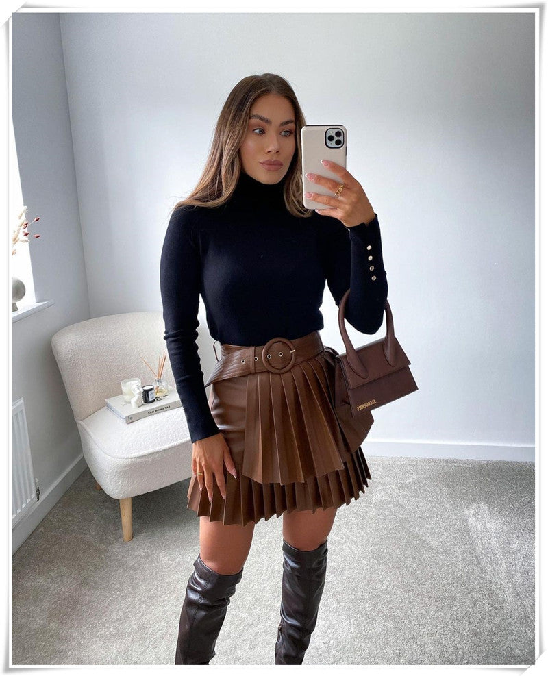 Turn heads with this mini pleated skirt that is guaranteed to get noticed. Its a flattering style that flatters any body type. The flattering pleats create a flattering silhouette that accentuates your curves and flatter your figure. The auburn shade is a stylish choice that is sure to make a statement.