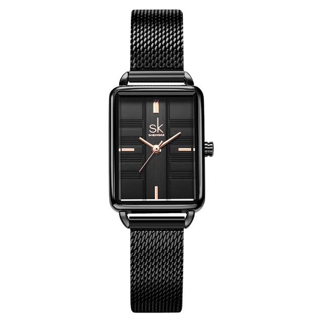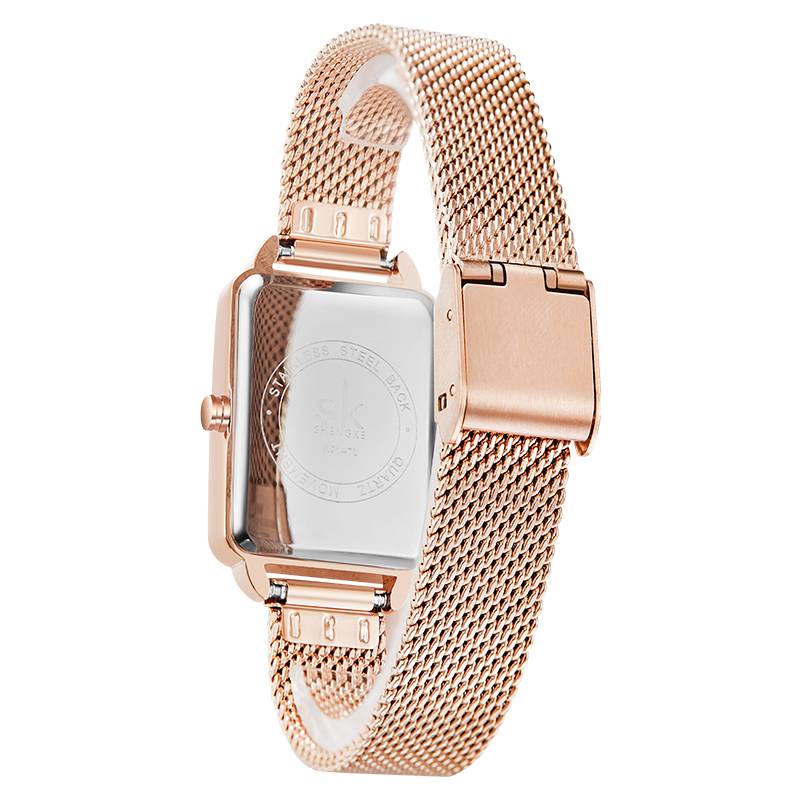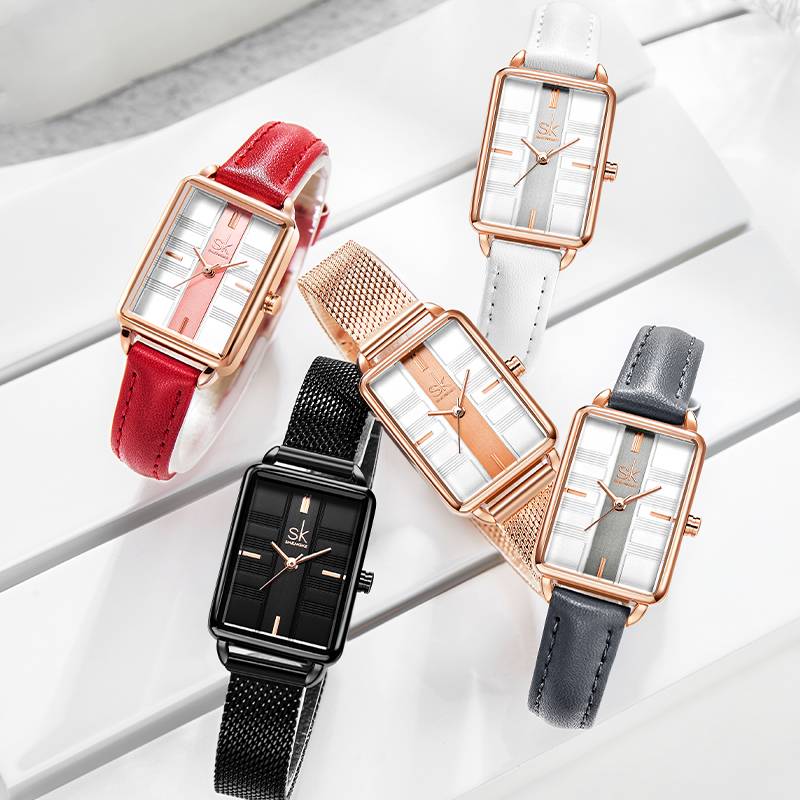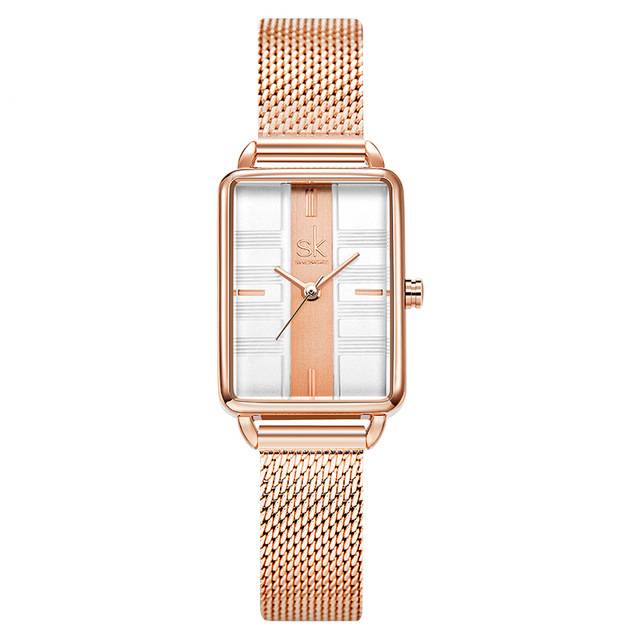 Elegante reloj rectangular de acero inoxidable estilo raya minimalista con correa de acero inoxidable y movimiento de cuarzo