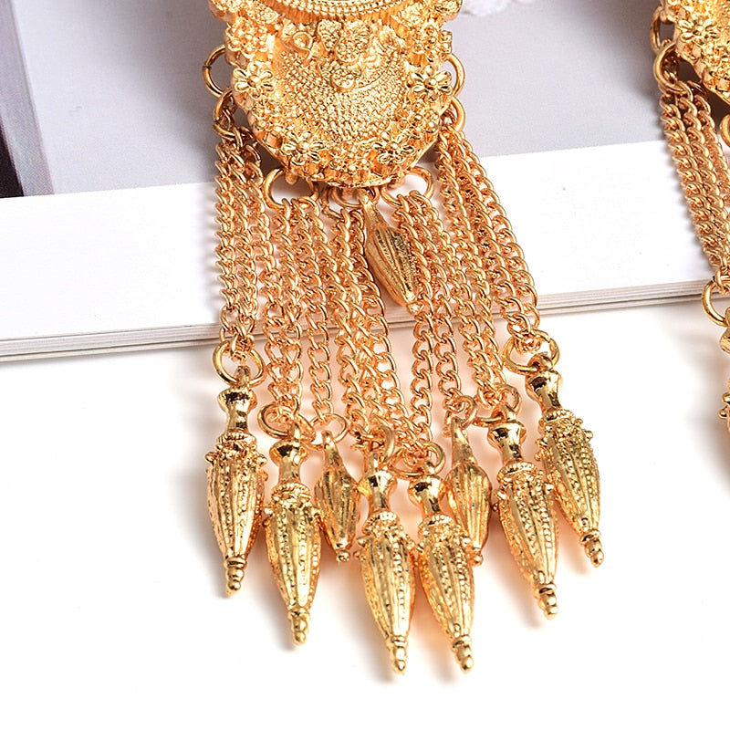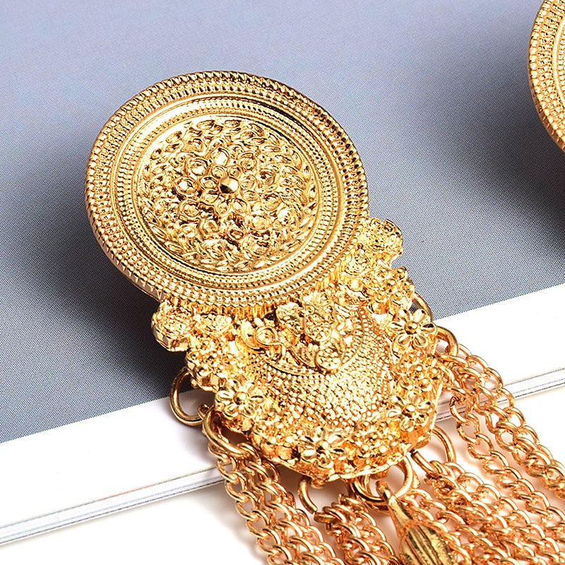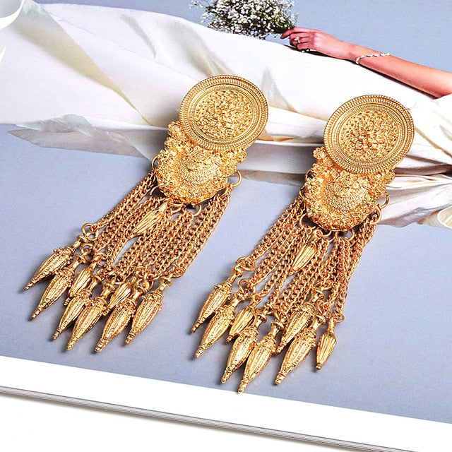 Pendientes largos de cadena con borlas y material de aleación de zinc